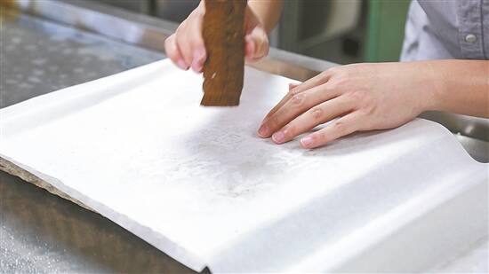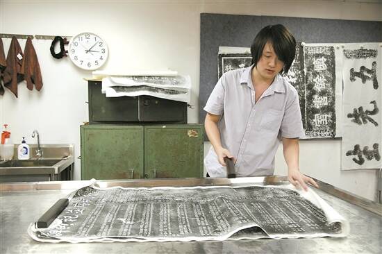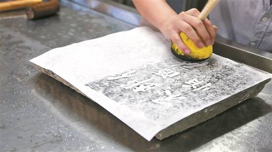 上纸后刷平,赶走空气使纸与碑面密合 |