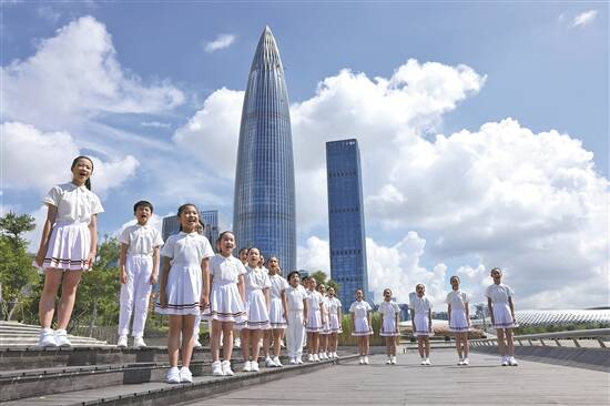 文/羊城晚报记者 李艺戈 在中国共产党建党101周年和香港回归祖国25周年、《深化粤港澳合作 推进大湾区建设框架协议》签订五周年之际,共青团深圳市委员会联合广东省青少年宫协会共同主办了“同舟·童行·庆回归——湾区少年歌曲传唱活动”。 据了解,此次活动由深圳联合香港、澳门、广州、佛山、东莞、珠海、中山、惠州、江门、肇庆等11个城市共同拍摄制作《奔跑吧,湾区少年》大型音乐视频,各地少年以青春、昂扬的旋律,用童声与湾区同频共振,展现出湾区少年蓬勃向上的精神风貌,以实际行动向伟大新时代致敬。 深圳市少年宫相关负责人表示,希望通过这首歌的传唱,引导少年儿童坚定不移听党话、跟党走,做新时代爱国奋进的好少年。同时,以文艺作品为载体,搭建粤港澳文化交流合作平台,促进粤港澳青少年广泛交往、全面交流、深度交融,增强对祖国的向心力。 据悉,《奔跑吧,湾区少年》是由深圳市委宣传部指导支持,深圳市团市委、深市少年宫共同邀请本土优秀词曲作家创作的一首优秀原创歌曲。歌曲以粤港澳大湾区为着眼点,描绘了粤港澳大湾区少年在追梦路上的青春靓丽风景,集中展示了身处改革开放前沿的少年们的精神风貌,体现了“请党放心,强国有我”的青春力量。