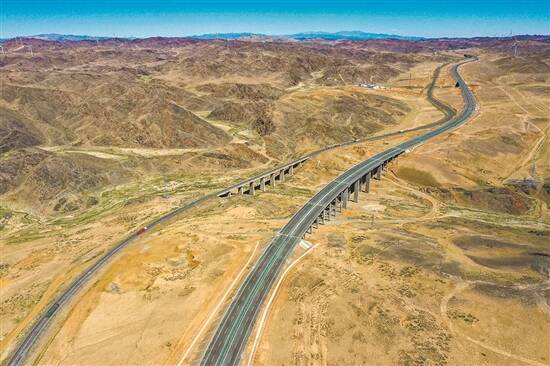 京新高速公路(画面右侧)穿过新疆木垒哈萨克自治县的山区 新华社发 |