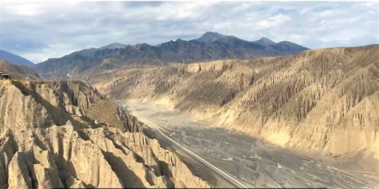 京新高速公路(画面右侧)穿过新疆木垒哈萨克自治县的山区 新华社发