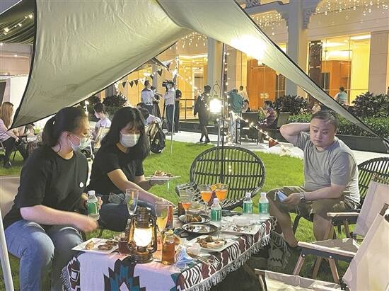 文/羊城晚报记者 马思泳 施沛霖 图/羊城晚报记者 马思泳 当露营成为今年的热门休闲方式,将露营元素与音乐相结合的户外帐篷音乐节,在这个夏日吸睛无数。绚丽的灯光、动人的旋律点燃了户外氛围,人们在闹市里也能感受度假气息,羊城的夜经济被勾画得多姿多彩。 迎潮流:户外帐篷金曲再起 炎炎夏日,夜色斑斓,走过车水马龙的广州流花商圈,一首首红遍粤港澳乃至全国的经典金曲旋律在东方宾馆户外帐篷音乐节响起——老字号东方宾馆积极融合广州夜间消费新趋势,为城市富有烟火气之地再添一份闲适生活气息。 7月15日晚,充满怀旧感的户外帐篷音乐节仿佛令时光倒流至东方宾馆翠园宫音乐茶座的光辉岁月。1980年,东方宾馆率先在翠园宫餐厅开办全国第一个营业性音乐茶座,次年组建广州东方轻音乐团,一大批歌手和乐队在此成名。20世纪80至90年代,音乐茶座风靡全国。 从1971年正式入职东方宾馆的黄美枝曾是翠园宫餐厅主管,她说:“每晚8时,餐厅晚餐饭市结束,我们准时清场,移走餐厅中央的大桌,搭建四面舞台,乐队搬乐器上场。晚上9时开唱,直到零时停止营业,客人才愿意逐渐散场。”听着流行乐曲,品味东方宾馆出品的粤式经典点心,那时广州夜生活氛围已格外多彩。 多年过去,怀旧金曲再次在东方宾馆10000平方米的中庭花园草坪响起。帐篷支开,露营小桌椅有序摆放,三五知己齐聚,品味烧烤美食,聆听多首经典粤语金曲,一场氛围感十足的户外帐篷音乐节由此展开。 “80后”陈小姐是一位土生土长的广州人,听闻市区内有帐篷音乐节,便带着小孩来体验一番,“在有着岁月沉淀的宾馆体验户外帐篷音乐节,一种传统和潮流相互碰撞的夜生活方式就此诞生。”大人们享受着触发青春记忆的经典怀旧金曲,孩子在草坪撒欢,城市中的绿洲滋养一代又一代人的惬意生活。 作为户外帐篷音乐会的听众之一、东方宾馆总经理钟耀宗感触良多:“时光变,但经典作品仍在传唱,受欢迎的音乐作品需要空间传递。” 潮玩季:露营混搭音乐成热门 踏入夏季,广州及周边地区已举办了多场户外帐篷音乐节、露营音乐会,一时间“露营+音乐”的微度假形式,成为年轻人周末的新玩法。 上月21日,广州露营音乐会空农场解锁了户外音乐会的“新姿态”,在农场的婚庆草坪上,以“夏日、乡野、星空、乐趣”为主题的露营音乐会吸引了百余名青年参与,感受露营文化与潮流音乐碰撞引发的多元趣味。广州北迹露营基地则以“露营+音乐节+潮流市集”的形式,吸引各路潮人前来打卡。 不独城外,在城央的住宅小区里,周末的户外帐篷音乐节也给市民带来了欢乐时光。7月16日,时代倾城业主便欢度了一场户外帐篷音乐节,一片草坪、一个舞台、一群热爱生活的人相聚于音乐声中,开启了七月潮玩季。 不少主办方表示,帐篷音乐节、露营音乐会将持续举办。“东方宾馆的帐篷音乐节集合了老、中、青元素:经典老歌、怀旧的中年人加上年轻时尚的帐篷音乐节形式,吸引着更多的都市人。”钟耀宗透露,帐篷音乐节将续持举办,在未来8月和10月,以不同主题、形式打造户外帐篷音乐节,助力羊城夜经济。