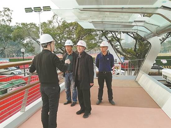 何镜堂院士在海心桥施工现场 |