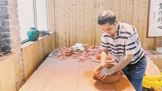 包括拉坯等在内,紫丹苏陶的制作工序全部需要人手操作 |