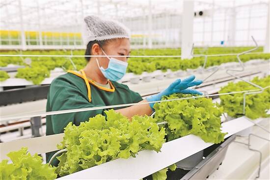 文/图 梅尔 梁少冰 周俭民 15万平方米半封闭玻璃智能温室、半天可完成7万颗种子播种、1580个传感器24小时监控、32层净化纯净水灌溉……珠海首个世界领先高科技现代设施农业示范项目——粤港澳现代农业示范区,目前已正式投入生产,首批果蔬将于9月中旬上市,达产后年产高端果蔬可达7000吨。 现代高效智能生产模式 在位于珠海大桥旁的粤港澳现代农业示范区(以下简称“示范区”),笔者看到,一片现代化智能玻璃温室在一望无际的原野上拔地而起,在耀眼的阳光下,犹如一座巨大的“水晶宫”。 走进温室,生菜、水果青瓜、彩椒等品种繁多,每株果蔬长势良好,绿意盎然,一派丰收景象。种菜不用土、农民着工装、大棚赛厂房,这是笔者在温室里看到的生产场景。 笔者留意到幼苗都是无土栽培,采用天然椰糠作为基质,避免了传统种植带来的重金属污染及土传病害。果蔬藤沿着牵引线不断向上攀升,温室地面上还安装有轨道,工人们正驾驶自动升降机,进行作业。温室内,一排排风桶、一块块幕布、一条条黏带……均可通过智能控制,打开及时通风、调节室温、预防病虫害,科技感满满。 据了解,粤港澳现代农业示范区是珠海推动现代农业发展的重点项目,也是贯彻落实乡村振兴战略、《粤港澳大湾区发展规划纲要》和省委、省政府相关决策部署的一项重要举措。首期项目由华发集团投资建设,占地面积约20万平方米,建设有15万平方米半封闭玻璃智能温室,是我国南方地区单体规模最大、科技化程度世界领先的三产融合项目,实现高效、智能、绿色、生态的现代智慧生产模式。 珠海华实美原生态科技运营管理有限公司常务副总经理陈江明表示:“量身定制的半封闭智能玻璃温室,是由21家欧洲顶尖的温室设计公司,采用最新科研成果打造的,实现种植高效化和精准化。” 目前,粤港澳现代农业示范区已荣获华南地区现代农业创新示范基地、农业农村部华南都市农业重点实验室、珠海市“菜篮子”生产供应基地等多个荣誉称号。 每一株植物都“雨露均沾” 作为高科技的种植“工厂”,不仅打破了过去“橘生淮南则为橘,橘生淮北则为枳”的局面,还实现在播、种、管、收等种植各个环节高度自动化。据悉,这里面“暗藏”有多种高科技产品。 核心设备:采用全球最先进半封闭玻璃温室系统、除湿制冷模块,以及创新开发了人工光线性调光技术,可根据实时气象数据,实现高湿高温寡照地区蔬果产品的全年生产。 全自动播种机:可自动完成压穴、取种、播种,每分钟播种可达360颗,仅需半天时间,即可完成7万颗种子的播种工作,是人工播种效率的100倍。 覆盖系统:温室顶端散射玻璃的雾都值,经过精确的计算定制,保障每一棵植株都可以均衡地享受到阳光的照射。 线性补光及幕布系统:线性无极调光给予充分光照,营造了更加可控舒适的种植微环境。 环境控制及智能决策系统:温室内遍布1560个传感器,24小时监控,实时将温光水气肥及设备运行数据传输至大数据中心,对植株所需要的生长要素进行精准调节,使每一棵植株生长环境稳定一致。 灌溉系统:科学灌溉为植株提供精准营养,灌溉水经过32层RO反渗透系统净化,让每一滴水安全纯净。 水肥一体化系统及压力补偿滴箭系统:自动合力调配各种营养要素,实现精准灌溉。 此外,利用进口雄蜂为植株授粉,提高产量,改善蔬果品质。采用生物防治技术,有效避免病虫害防治带来的农残危害。 “相比传统的农业种植,高科技智能玻璃温室种植模式,可有效保护土地,降低工人成本,提高种植效率,还能提高种植品种的产量和质量。”陈江明告诉笔者,“以番茄为例,高科技智能玻璃温室的产量是传统种植模式的10倍,种植的番茄不仅外形美观,营养丰富,味道鲜美。” 蔬果产品全程可追溯 除了有尖端的高科技栽培技术,种植的果蔬品种也相当讲究。 温室里将种植的是示范区聚焦世界前十的种子公司,从3000多个优质种源中甄选出30多个优秀品种,兼具好口感型和功能型高端果蔬。首批将引进一系列水果番茄产品,包括沙糯粉茄、红樱桃番茄、黄樱桃番茄;五颜六色的健康彩椒系列、生菜系列、水果黄瓜系列,以及风味浓郁的香野草莓、白雪公主草莓系列。项目达产后年产量预计可达7000吨,将持续为粤港澳大湾区供应绿色、安全、放心的高品质果蔬。 值得一提的是,这里所有产品全程可追溯。从育苗、种植、采摘、筛选、品控、物流、终端等每个步骤都有详细信息记录,每个环节按照Global G.A.P、绿色食品认证、ISO9001管理和食品安全体系进行管控,确保整个生产链条和每批产品可追责、可追溯,确保质量安全。 此外,人才团队方面,示范区内85%以上的核心技术人员拥有硕士以上学历和海外留学背景,60%以上的种植团队成员拥有10年以上温室种植生产运营经验,顾问专家来自荷兰、美国、日本等国家和地区,团队拥有丰富的温室种植生产运营经验和强大的研发能力。 陈江明表示,首批的果蔬将于9月中旬上市,市民可以在家门口品尝到来自原产地荷兰等国家的水果青瓜、水果甜椒等高品质绿色环保生鲜蔬果。“目前半封闭智能玻璃温室是属于华南地区面积最大智能玻璃温室,展望未来,粤港澳现代农业示范区将积极助推农业现代化与智慧化发展,持续探索现代设施农业及智慧农业发展的新路径,打造高产量、高品质、高效率的高科技温