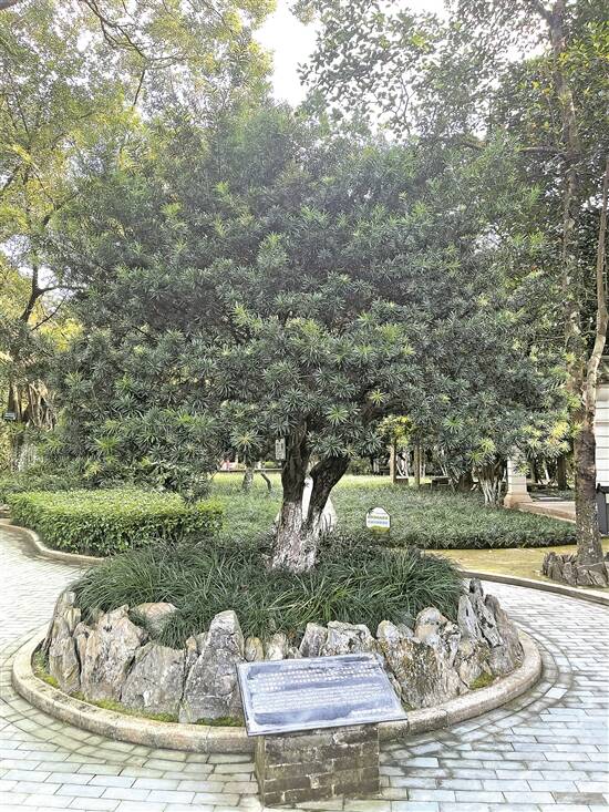 1910年共乐园建园时唐绍仪亲手种植的罗汉松 |