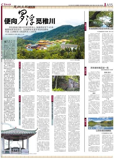 文/图 羊城晚报记者 李海婵 通讯员 王小虎 统筹策划/羊城晚报记者 陈骁鹏 马勇 制图/杜卉 宋绍圣元年(1094年)九月二十三日,苏东坡携家人从广州向惠州进发。九月二十六日,船泊博罗县泊头镇(现园洲镇义合村),次日晨,至罗浮山。从此,苏东坡开始了寓惠两年七个多月的贬谪生涯。登山前,他迫切地“便向罗浮觅稚川”,游玩后意犹未尽,“期以明年三月复来”,在惠期间先后写下40余篇赞咏罗浮的诗文。 这不禁让人好奇,究竟是怎样的一座山让苏东坡如此钟情?他又是如何“玩转”罗浮山的?如今游客们能否“打卡”东坡同款线路?近日,记者在专家学者、景区人员的带领下实地走访发现,900多年过去了,东坡所游景点历经沧海桑田,有的被岁月沉埋;有的异址重建,日渐被人淡忘;有的至今声名远播,吸引无数游客蜂拥而至。 昔日文人笔下,“罗浮”二字甚至直接指代整个岭南地区。苏东坡对罗浮山的情结,可以说也是为岭南山水所倾倒。在岭南期间,苏东坡创作了大量脍炙人口的作品,足迹遍布广州、韶关、英德等地。仅在惠州,他留下逾400篇诗词文赋,行至西湖、罗浮山、汤泉等地。 冲虚古观 葛洪始创东坡游历 游客必去之地 九月的罗浮山,气候舒适,空气清新宜人。远远望去,山势雄伟壮观,植被繁茂常绿,吸引众多游客登高赏景。自古,罗浮山享有“百越群山之祖”“岭南第一山”“神仙洞府”等美誉。无数名人和游客到此登山揽胜、远离喧嚣、放松身心。 苏东坡也不例外。一到惠州,他迫不及待登临罗浮。此行最直接的依据,便是《题罗浮》一文。由此能详细了解他的游玩路线:宋绍圣元年(1094年)九月二十七日清晨,苏东坡从博罗泊头镇登岸“肩舆十五里,至罗浮山”。白天他访延祥寺、宝积寺,礼天竺瑞像、饮卓锡泉水;向东三里经过长寿观,再向东北三里到冲虚观,参观稚川丹灶、朝斗坛;访冲虚观道士邓守安不遇;坐遗履轩望麻姑峰,与进士许毅饮酒。晚上,他醉还宝积寺中阁寄宿。次日清晨,他吃粥还舟,憩花光寺。 “我们还能捕捉到一些900多年前的风景!”罗浮山景区管委会文管所所长唐晓文介绍,苏东坡游历过的不少景点,仍是游客的必去之地,如冲虚古观、稚川丹灶。 背靠层峦叠翠的麻姑峰,冲虚古观掩映在苍松古柏之中,面向波光潋滟的白莲湖,环境清幽。这是一座四合院式砖木建筑,大门楹联上刻着“典午三清苑,朱明七洞天”,香火旺盛,被称为岭南道教的“祖庭”,是全国重点文物保护单位。 冲虚古观在岭南道教中的地位,与葛洪息息相关。唐晓文介绍,葛洪来罗浮山后,在朱明洞天前始建南庵。1087年,宋哲宗赐额名“冲虚观”,从此盛名长存。七年后,苏东坡上罗浮山游此观,其间有道士陈熙明陪同。 冲虚观自建庵起,一直没有迁址,观名千年来沿用至今。观内有一口1600多年的“长生井”,传说乃葛洪炼丹用水。古观周围古迹更多,稚川丹灶造型古朴,颇具韵味。苏东坡游罗浮时,还为其题写下了“葛洪丹灶”,遗憾的是,题刻在明末清初兵祸时散失。如今正面刻着的“稚川丹灶”四个大字,由广东学使吴鸿在清乾隆二十四年(1759年)补题,字迹清晰可见。 “东坡痕迹不止这些,其游罗浮的盛事依旧被传诵发扬。”唐晓文指着稚川丹灶旁的东坡亭介绍,这是在清道光年间为纪念东坡登临罗浮山而建,历久弥新。在东坡亭右侧,“罗浮高万仞,下看扶桑卑。默坐朱明洞,玉池自生肥……”东坡诗词被后人刻于木上。游客驻足观赏,不由遥想东坡当年的心境。 命运多舛 几经兴废重修 寺观原址难寻 并非所有的寺观都如冲虚古观幸运。当年东坡游历过的大多寺观都已消失或者异地重建。惠州本土东坡文化研究者黄海玉曾多次上山试图寻找原址,期待将罗浮山的东坡遗迹串珠成链。 据黄海玉调研考察,延祥寺与宝积寺距离相近,均位于小石楼峰。延祥寺前身为南楼寺,在南朝梁大同年间(约540年),由广州刺史、河东王萧誉为景泰禅师建。宋仁宗宝元、康定年间,住持云达禅师重新修建并光大。50多年后的绍圣元年(1094年),苏东坡来游此寺,期间有住持绍冲长老陪同。明洪武二十四年(1391年),原寺废。 宝积寺、中阁禅院也是“命运多舛”。宝积寺相传为天竺僧人智药禅师创建。中阁禅院乃唐朝廷为南楼寺高僧怀迪赐建,与宝积寺实为一体。苏东坡来游宝积中阁并夜宿于此,其间有长老齐德禅师从游,结下情谊,翌年苏东坡赠杖并赋诗《送佛面杖与罗浮长老》:“十方三界世尊面,都在东坡掌握中。送与罗浮德长老,携归万窍总号风。”明洪武二十四年(1391年),原寺渐废。 延祥寺与宝积寺在明代逐渐废弃后,后人屡屡进行修缮或重建。延祥寺在清康熙、雍正年间,向下复建,1931年重修,其址大约位于冲虚观西南七里的山麓旷野处,寺门有“延祥古寺”石刻匾额。如今的延祥寺乃异址另建,在罗浮山西南麓,朝元洞之下。宝积寺在明崇祯中,由僧十虚首倡,由曾任礼部尚书的博罗人韩日缵牵头、联合募修,直至1955年毁。今宝积寺另建在罗浮山北侧。 游历延祥寺、宝积寺之后,苏东坡由宝积寺往冲虚观途经长寿观。据悉,当时长寿观的地址在宝积寺东三里、龙王坑东侧,已废。宋末,古观迁至县城西榕溪上,如今博罗远近闻名的“网红村”观背村存其遗址,但遗址之上早已是民居。 苏东坡歇脚休息的花光寺,颇为奇怪。“我们在史籍中并未找到该寺名,推测应指的是‘花手寺’。”黄海玉