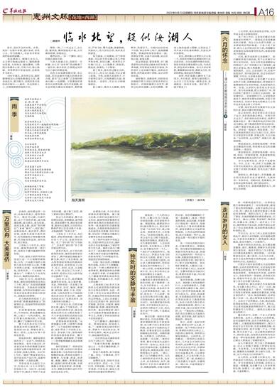 □章铜胜 独处时,一个人的内心世界,大概只有自己知道。有时极安静,有时却格外丰盈。想起独处,就想起李白的《独坐敬亭山》,他在诗中写道:“众鸟高飞尽,孤云独去闲。相看两不厌,只有敬亭山。”