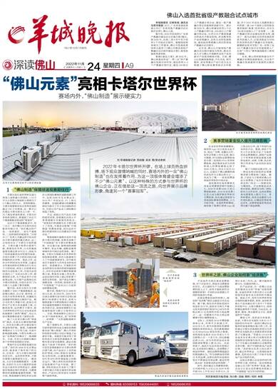 文/羊城晚报记者 范晗越 吴泳 图/受访者供 2022年卡塔尔世界杯开锣。在场上球员热血拼搏,场下观众激情呐喊的同时,赛场内外的一众“佛山制造”也在发挥着作用,为这一顶级体育盛会增