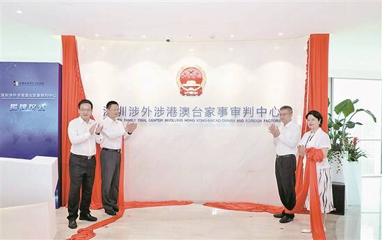 7月6日上午,深圳涉外涉港澳台家事审判中心在龙华区揭牌成立 深圳市龙华区人民法院供图 |
