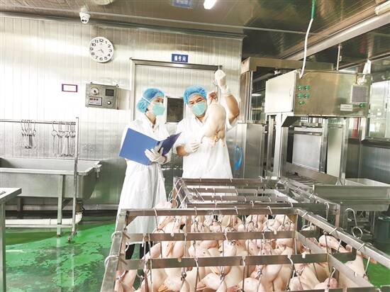 斗门海关关员对金同农副食品有限公司的熟食生产车间进行日常监督管理 吴松起 摄 |