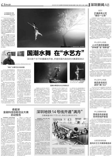 文/羊城晚报记者 林园 图/羊城晚报记者 李艺戈(除署名外) 广受好评的《洛神水赋》、将大型福建客家土楼景致置于海底的水下创意节目《鲲》、在冰下拍摄的中国舞节目《青女司霜》、让南宋名画在水下“活”过来的《水图》……这些近两年爆红全网的水下舞蹈作品,均出自深圳一家年轻的创业公司。此前,因为深圳没有专业的水下拍摄基地,团队拍摄作品需要辗转多个城市才能完成。 近日,伴随着“水艺方”的开放,深圳有了首个水下拍摄基地。据了解,这个开设在工业园区的基地,不仅可以完成水舞作品的拍摄,而且还提供国内首创的水舞课程培训。目前,基地接收过的学员达到50多人,年龄最小的6岁,其中有专门从内蒙古过来学习的小朋友。 “网红”水舞可在本地拍摄 2021年,深圳歌剧舞剧院首席舞者张娅姝担任主演的水舞作品《红》火爆全网。今年3月,水舞《月影无极》又上热搜。近两年,不少爆红全网的水下舞蹈作品均为“深圳造”,主创班底、制作公司、制作团队出自深圳市三人行网络文化传媒有限公司。团队中有专业舞者、花样游泳运动员、国内顶尖的水下摄影师等。 郭吉勇是这些作品的导演,虽然他是一位“80后”,但身边的人都喊他“吉叔”。在成为水下舞蹈导演前,吉叔擅长街舞,热爱潜水、滑雪、跳伞、冲浪、摄影等。将中国传统文化的元素与“水”结合,吉叔和团队成为国潮“水舞”的开创者,通过水舞短片向人们展现水下独有的飘逸之美。此前,因为深圳没有专门的水下拍摄基地,吉叔和团队要辗转多个城市才能完成作品拍摄,创作成本也因此提高了许多。为了节约成本,团队还不得不加长每天泡在水里的时间。 就在近期,位于宝安区的水艺方对外开放。基地有舞蹈室、化妆间、服装间和淋浴间,当然,“主角”还是巨型水池。水艺方销售总监茉莉介绍,团队通过半年时间的寻找,才确定了这个选址。“因为水下拍摄对水深有要求,所以对地面的承重要求高。之前也有不少商场邀请我们去开设基地,但由于商场大多建设有地下车库,承重方面不满足条件。”据其介绍,目前水艺方水池中的水重达250吨。 “有了这个基地后,除了需要大型布景的拍摄,我们日常70%的拍摄可以在深圳完成。”吉叔表示,除了无须舟车劳顿,这个精心设置的拍摄基地还有很多优点,“之前我们在外地拍摄用到的基地,水池的壁基本都是直角的,我们后期去掉直角边要花很多时间。现在我们自己的基地,专门设计了有弧度的边,能起到像影楼拍照后面有弧度的幕布效果,画面中没有边、光影也会更好看。”吉叔表示,此外,基地自己可以设置水温,方便设置团队下水的适宜温度。 吉叔介绍,未来他还将推出更多的创新作品,比如水下剧,并通过丰富的光电影特效,掩盖演员出水换气的时间,让作品呈现更加流畅,同时在创作空间中,能将陆地和水下更好地结合起来。 国潮水舞面向大众开展培训 伴随着水艺方的开放,国内首个水舞系统培训课程也诞生了。“我们拍摄的水舞作品出圈后,我听到一些声音说‘好美、好高端’。然后我也开始思考,并不想做出脱离大众的艺术作品。”吉叔说,创作水舞视频的初衷,是用有趣的形式让更多人去了解传统文化,并去亲近水和传统文化。 今年年初,一位来自内蒙古的网友给吉叔发私信询问“自己爱玩水的女儿,能否前来学习水舞”。“当时考虑到,大部分水下基地的水深比较深,耳压太大,不适合小朋友。”吉叔当时并没有答应这位网友。也因此,在建设属于自己的水下基地时,吉叔设计了3米的池深,并凭借自己的水下拍摄经验,与团队的顶尖舞者设计一套专业的水舞课程,让没有专业背景的普通人也能学习。 得知基地开放后,上述网友一家人从内蒙古专程飞到深圳,为7岁的女儿小树苗报名了水舞课程。小树苗也成为基地第一位幼儿学员。受小树苗一家感动,不同于以往拍摄的商业摄像,吉叔专门为小树苗拍摄了一段水舞视频。 据介绍,上课时,除了专业老师,基地还配置了水下督导和摄影师、安全员。他们持证上岗,具备国际救援证书等证件。目前,基地最小的学员6岁、最大的学员55岁。水舞课程有不同难度,课程分为初级、进阶、高级。 除了课程学习,基地同时可供市民学习潜水、美人鱼等多种水下运动。其中,起源于国外,集自由潜水、蹼泳、花样游泳、瑜伽和舞蹈于一身,源自传说里的美人鱼运动是当下的新潮水下运动项目。目前,美人鱼运动已经列入比赛项目。在深圳,持证的美人鱼教练约有100多名,与水艺方签约的达十几名。一些水舞教练同时也是美人鱼持证教练。