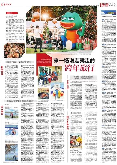 文字整理/羊城晚报记者 黎存根 出境:1月8日起将有序恢复中国公民出境游 12月26日晚,国务院联防联控机制发布《关于对新型冠状病毒感染实施“乙类乙管”的总体方案》,《方案》提出优化中外人员往来管理,预示着1月8日起将有序恢复中国公民出境游,此举表明我国在跨境游机制上实现了跨越式放开。 新政对旅行消费的刺激立竿见影,多个海外目的地搜索量即时大增,出境机票、海外酒店搜索量均于当晚达到疫情三年以来峰值。 业内人士预计,北上广等重点口岸城市有望成为第一批恢复出境游的试点城市,首批恢复的出境游业务将以团队游为主要形式。 跨省游:元旦跨省游同比增超三成 携程发布报告称,作为疫情防控政策优化后的首个小长假,2023年元旦跨省游占比已近六成,较2022年中秋小长假稳步提升,比2022年元旦增长34%,大多数用户迫不及待奔向远方。此外,跨省团队游同比增长46%,机票、本地门票预订对比中秋增长21%、33%。 数据显示,广州的本地旅游市场加快恢复,近一周门票预订量环比增长72%。热门景区长隆野生动物世界、广东省博物馆、广州塔、广州热雪奇迹(融创雪世界)受到众多游客欢迎。 榜单:中国乡村入选2022“最佳旅游乡村” 日前,联合国世界旅游组织公布了2022年“最佳旅游乡村”名单,中国广西大寨村和重庆荆竹村成功入选。大寨村位于广西壮族自治区桂林市龙胜各族自治县,荆竹村位于重庆市武隆区仙女山街道。加上此前入选的浙江余村和安徽西递村,我国已有4个乡村入选联合国世界旅游组织“最佳旅游乡村”。 旅游展:第31届广州国际旅游展将于明年五月举办 日前,广州国际旅游展组委会发布消息,第31届广州国际旅游展览会将于2023年5月19日-21日在广州举行。它是国内历史最为悠久的旅游专业展览会之一。 生态游:川滇粤领跑生态旅游绿水青山总指数 近日,中国林业生态发展促进会、中国社会科学院数量经济与技术经济研究所与社会科学文献出版社发布了《生态发展蓝皮书:中国生态旅游发展报告(2022—2023)》。报告课题组构建了中国生态旅游发展和绿水青山两个指标体系,北京、上海、重庆在生态旅游发展总指数中位列前三;四川、云南、广东在生态旅游绿水青山总指数中领跑。 边境游:广西启动边关国家旅游风景道建设 日前,广西壮族自治区在崇左宣布启动边关国家旅游风景道建设,力求用3年时间,将边境一线建设成为世界一流旅游目的地。据悉,广西边关国家旅游风景道全长约725公里,由东南往西北方向串联东兴市、防城区、宁明县、凭祥市、龙州县、大新县、靖西市、那坡县等8个县(区、市),终点在那坡县百都乡弄陇村。 公示:广州塔入选2022年国家旅游科技示范园区 近日,文化和旅游部发布《关于2022年国家旅游科技示范园区名单的公示》,拟确定广州塔旅游区等12家园区为2022年国家旅游科技示范园区。 12家园区分别为:河北省多玛乐园、内蒙古自治区伊利全球智能制造产业园区、辽宁省沈阳方特欢乐世界、上海市智慧湾、浙江省横店影视文化产业集聚区、江西省陶溪川文创街区、河南省中牟县现代服务业开发区、广东省广州塔旅游区、四川省中华彩灯大世界、贵州省中国天眼、陕西省白鹿原影视城景区、青海省冷湖火星小镇。 优惠:“冬游西藏”元旦起实施,景区免费游览 西藏自治区旅游发展厅官网日前发布信息,第五轮“冬游西藏”市场促进奖励(补助)优惠政策将于2023年1月1日至2023年3月15日实施。届时,除寺庙景区外,全区所有景区免费游览,相关酒店、旅游运输企业执行淡季价格,此外,符合条件的旅行社、航空公司还将享受奖励(补贴)。