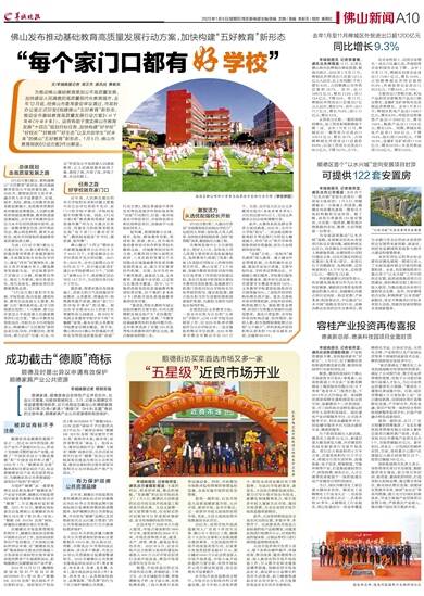 文/羊城晚报记者 梁正杰 通讯员 佛教宣 为推动佛山基础教育更加公平高质量发展,加快建设人民满意的高质量现代化教育强市,去年12月底,经佛山市委常委会审议通过,市政府办公室正式印发