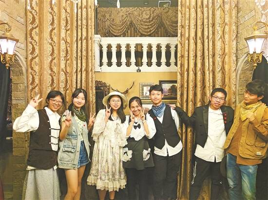 高考结束后,学生们邀请小淳老师(左四)一起玩剧本杀