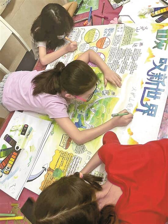 广州协和学校小学生正在绘制环境地图 |