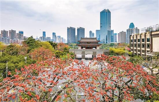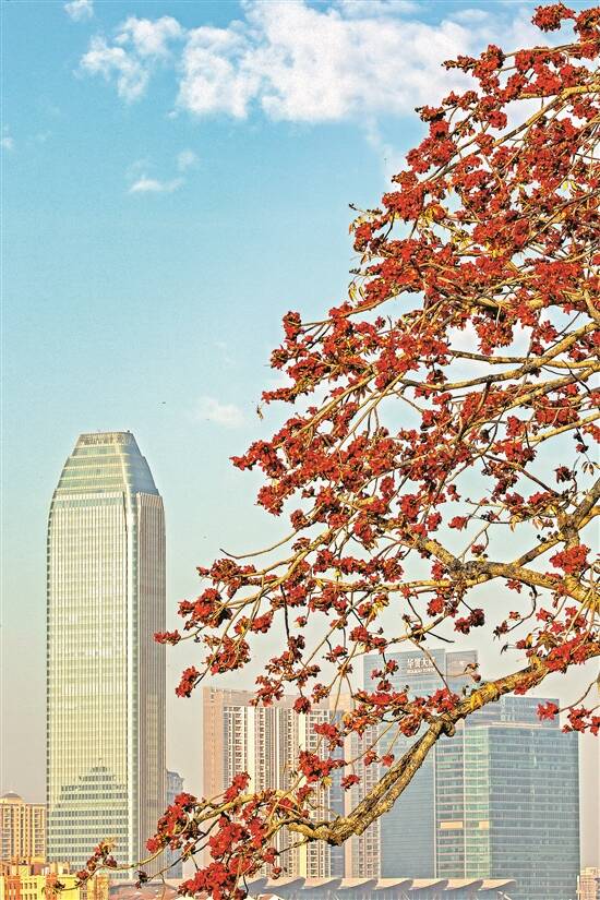 火红木棉和远处高楼相映成景 林志华 摄 |