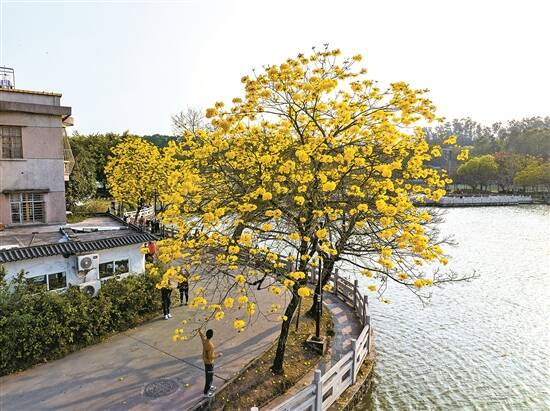 菱湖边上的黄花风铃木进入最佳观赏期 林志华 摄 |