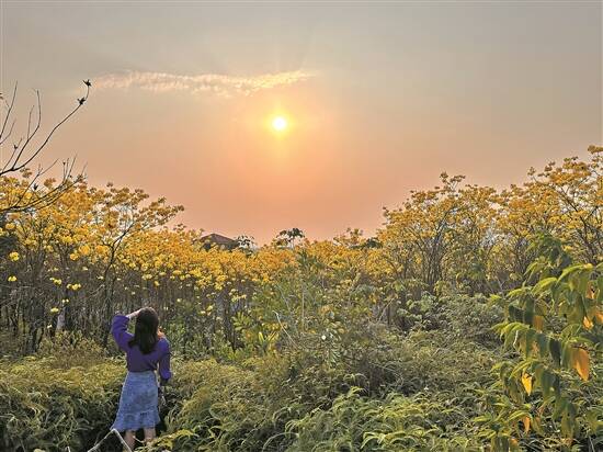 而在位于花都区赤坭镇的竹洞村,赤坭镇文旅产业高质量发展周也在上周末正式启动。“又到了踏青赏花的季节,去年曾有机会观赏过大片的黄花风铃木盛景,被惊艳到了,当时就决定今年一定要再看!”广州白领曾女士在活动期间专程开车来到竹洞村,深深陶醉在数千株黄花营造的唯美仙境中。