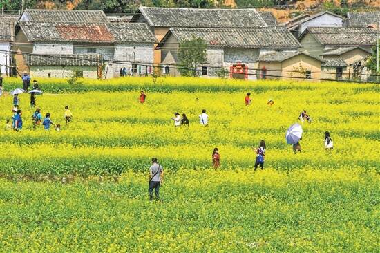 油菜花田里,游客用镜头捕捉春意 吴伟荣 摄 |