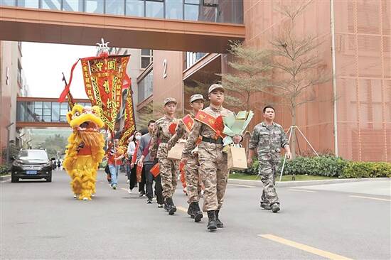 从戎报国英雄志,建功立业正当时。近日,光明区新湖街道组织召开2023年入伍新兵欢送会,热烈欢送3名优秀青年光荣入伍。 14日下午,新湖街道大院锣鼓喧天、醒狮起舞,新兵们佩戴大红花,昂首挺胸,3条楼村醒狮队伍高举醒狮旗,喜贺新兵入伍。会上,宣读了新湖街道2023年春季入伍新兵名单,向新兵赠送了鲜花和纪念品,即将入伍的新兵们身着军装、精神抖擞,怀着对军营火热的憧憬,肩负践行“强国梦”“强军梦”的光荣使命,即将踏上军旅征程,开启他们崭新的人生,谱写壮丽的青春之歌。 新湖街道党工委书记、人民武装部党支部第一书记、人民武装部政治教导员晓瑜代表新湖街道党工委办事处作了欢送讲话,向即将踏上军旅征程,步入绿色军营的新兵同志们表示热烈的祝贺,向积极送子参军的各位家长表示衷心的感谢和崇高的敬意。希望全体新兵要珍惜荣誉,牢记使命,要认真学习践行强军思想,自觉肩负强军历史使命。接下来,新湖街道坚决落实好优抚优待系列政策,做好军事关心照顾工作,并要求新兵同志们坚定从军报国理想信念,自觉遵守军队条令条例,服从命令,听从指挥,争做有灵魂、有本事、有血性、有品德的“四有”军人,在火热的军营里、强军的舞台上书写不平凡的军旅篇章。 (文/于木子 刘来顺 许斌帼 图/钟哈林)
