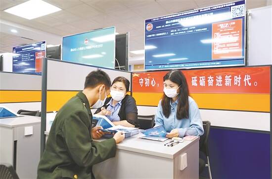 羊城晚报讯 记者张闻、通讯员叶新汉摄影报道:3月21日,“戎归佛山 扬帆起航”——2023年佛山市退役军人和随军家属春季招聘会在佛山市人力资源公共服务中心举行。 该活动由市退役军人事务局、市人力资源和社会保障局、佛山军分区政治工作处主办,由市人力资源公共服务中心承办。 本次招聘会共吸引50家企业进场招聘,涉及居民服务、绿色环保、交通运输、信息科技等行业,提供就业岗位近1200个。 “自去年开始我们便定向招聘退役军人,今年部分岗位更是仅面向退役军人招录,希望能在企业内打造一支退役军人工作团队。”顺德区盈合城市环境服务有限公司招聘负责人高新说道。 据了解,参加本次招聘会的退役军人和随军家属共258人,其中相当一部分是军队“两征两退”改革后首批春季返乡的自主就业退役士兵。 “招聘会为我们提供了很多工作机会,很多岗位都非常适合我们,而且用人单位也对招录退役军人有所倾向,连招聘门槛也相对放宽了。”退役军人刘振星说道。 为组织好本次招聘会,佛山市退役军人事务局携手市人力资源和社会保障局紧密合作,提前收集退役军人和随军家属的求职需求,市人力资源和社会保障局结合退役军人的求职需求精准邀约单位,大大提升岗位匹配度,初步达成意向211人次。 招聘会现场特别开设了政策咨询、就业指导推荐专区,除派发政策宣传册、提供政策咨询外,还专门设置了职业指导展位,邀请专业导师为求职人员提供职业生涯规划指导。 市退役军人事务局相关负责人介绍,后续市退役军人事务局将与市人力资源和社会保障局等相关职能部门凝聚合力,常态化组织线上线下专场招聘,实现退役军人招聘活动不停歇。其中,近期将举办2023年佛山市退役军人网络直播招聘会,为有意向就业但不方便参加现场招聘会的退役军人提供线上就业平台。各区也在近期陆续举办多场招聘活动,为退役军人提供更多就业机会。