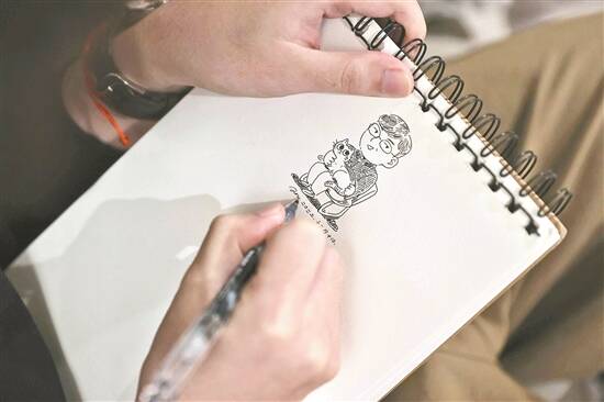 黄赫在奶茶店为一位作画者绘画 受访者供图 |