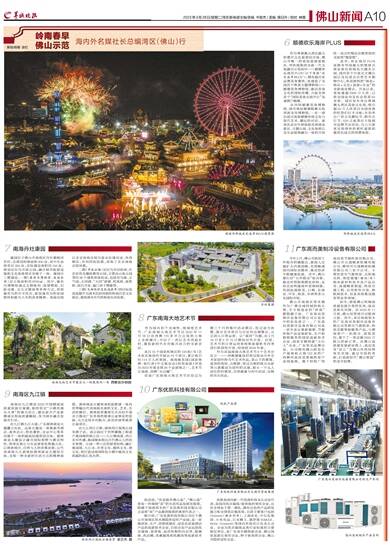 策划/统筹 谢红 文/羊城晚报记者 梁正杰 景瑾瑾 张闻 欧阳志强 吴泳 通讯员 黄佩莹 贺佳琦 图/由受访者提供(除署名外) 6 顺德欢乐海岸PLUS 作为粤港澳大湾区最大的都市文化旅游综合体、佛山市唯一的省级旅游度假区、华侨城集团全新一代文旅融合示范标杆——顺德欢乐海岸PLUS(以下简称“欢乐海岸PLUS”),拥有超百家品牌美食餐饮,还建造了全国首个粤菜主题博物馆——顺德美食博物馆,推动美食文化的国际传播,力促全球首个“国际美食交流中心”加速落户顺德。 区内的顺德美食博物馆、城市地标顺德眼摩天轮再到龙舟博物馆,一步一景沉浸式体验顺德传统文化与现代艺术、潮玩的对话。游客在走访中将体验其将商业街区、主题公园、文化体验以及生态湿地融为一体的开创性一站式吃喝玩住购赏娱的全面型“微度假”。 此外,欢乐海岸PLUS还拥有华南最大的情景式商业街区和海岛主题水公园、国内首个开放式主题公园以及沉浸式自然艺术购物中心,形成独特的“商业+娱乐+文化+旅游+生态”的全新商业模式。开业以来,客流量超3300万人次,已获全国业内及社会奖项50余项。园区每年举办粤港澳大湾区美食文化周,吸引超50万人次来自全国各地的吃货们打卡寻味;年均举办广府文化潮玩节、跨年点灯节、520之夜等近千场城市品牌节庆活动,为八方游客呈现绝妙的视听盛宴和提供沉浸式的消费体验。 7 南海丹灶康园 康园位于佛山市南海区丹灶镇银河苏村,总规划控制面积400亩,其中生态保育区250亩,实际建设面积约150亩,规划定位为市政公园,融合城市配套设施和文化旅游景区功能于一体。康园分三期建设,一期(康有为博物馆、南海会馆)总占地面积约6700㎡。其中,康有为博物馆通过文物陈列、场景模拟、幻影成像、交互式媒体等多种方式,再现康有为的生平经历,彰显康有为的家园情怀和敢为人先的改革精神。南海会馆以北京南海会馆为蓝本仿建而成,坐西朝东,并列四组院落,再现了北京南海会馆风貌。 二期(市政公园)定位为市民休闲、历史宣传及廉政教育公园,主要由山体公园等约26个建筑单体组成,包括有为阁、正气园、大同湖、“大同”游廊、明夷桥、更甡桥、邱氏书室、康门弟子塑像等。 三期(文物保护区改造提升)则目标是改造提升为清末民初风格的岭南历史文化街区,重现清末年代的岭南生活场景。 8 广东南海大地艺术节 作为国内首个全域性、地域型艺术节,广东南海大地艺术节自2022年11月18日在西樵170多平方公里的土地上全面铺开,开启了一次以艺术再造乡村、激发新时代乡村振兴活力的全新尝试。 来自15个国家和地区的134组(位)艺术家在地创作并展出73个项目,累计吸引约114万人次观展。南海被美国《国家地理·旅行者》中文版杂志《时尚旅游》评选为2023年度全球26个必游地之一,艺术节让南海、西樵“火出圈”。 首届广东南海大地艺术节在经过为期三个月的集中活动期后,经过适当休整,部分艺术项目与分区作出调整后,正式进入日常运营。以“春时”为题,在3月18日至5月15日期间对外开放。后续,艺术节的日常运营将按照春夏秋冬四季进行阶段性开放,持续到2024年春。 作为首届南海大地艺术节8个艺术分区之一——西樵镇凰岗村将呈现由中外艺术家创作的当代艺术作品,茶山下的雾境、屋顶的残垣、古树群、穿过古树的斑点光影等元素都成为创作的灵感,展示一个无人居住的村落里,自然植被与村中民居、动物的共生状态。 9 南海区九江镇 南海区九江镇是2022中国镇域高质量发展百强镇,始终坚定“小镇也能办大事”的强大信心,锚定新兴产业新赛道实现高质量崛起,争当城乡融合发展先行区。 在九江镇九江大道,广东源林商业大厦矗立在此。这座大厦是一座集豪华酒店、商务办公、特色餐饮、会议中心等多功能于一体的超高层建筑综合体。源林商业大厦设计融合国际视野与都会特性,将湾区核心与生态景观优势最大化,以探索城市、自然与人的多维连接,让代表南海九江新地标源林商业大厦综合体,呈现一种全新的生活方式和精神面貌。源林商业大厦将承担起搭建一座向世界输出代表南海水准的文化、艺术、生活的舞台。源林投资董事长关杰初不遗余力推动广东多地的慈善公益事业的发展,大力支持乡村振兴、扶贫济困等慈善公益项目。 在九江西江江畔,源林西江湿地公园坐落于此。该公园位于世界灌溉工程遗产桑园围的核心区——九江镇南部、西江北岸外滩,桑园围体现出古代佛山人的治水智慧。公园一带六区的景观结构,融汇桑园围、九江龙、乡贤文化、儒林文化、酒文化,将打造成南国特色小镇中最具文化底蕴的滨江风光带。 10 广东优凯科技有限公司 俗话说,“有家就有佛山造”,“佛山造”将每一件围绕“家”的生活用品发展至极致,隐藏于南海里水的广东优凯科技有限公司正是将“家”产品做到极致的典型代表之一。 据介绍,广东优凯科技有限公司位于佛山市南海区里水镇隐形冠军产业园,是一家集研发、生产、营销浓缩化、绿色化家庭清洁产品的高新技术企业,目前企业产品包括洗衣凝珠、留香珠、高活性物的内衣净、除菌液、洗洁精、洗碗凝珠和洗碗块等高新技术产品。 优凯是国内新一代洗涤科技龙头企业代表,是国内洗衣凝珠/留香珠的领军企业,且在全球处于第一梯队,拥有出色的产品研发能力和