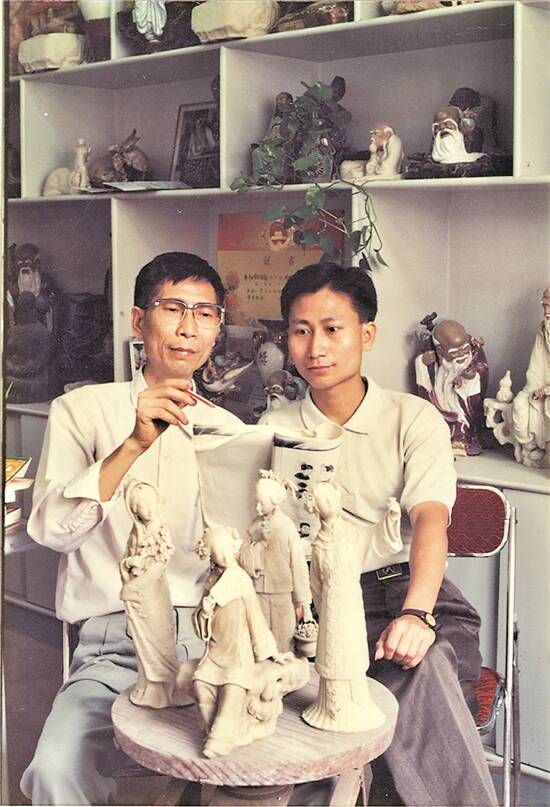 1992年黄松坚、黄志伟,父子在创作《春夏秋冬》 |