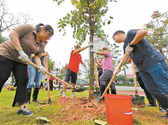 羊城晚报讯 记者陈卓栋,通讯员江轩、谭耀广摄影报道:记者24日从江门市委宣传部获悉,日前,江门市委宣传部、江门市蓬江区委共同组织的“根在侨乡 绿美广东”江门华侨华人和市民共植文明林活动,在蓬江区篁庄公园举行。现场还启动了“根在侨乡 绿美广东”义务植树认种认养活动。 活动现场,华侨华人、党员干部、市民群众代表一起扛锹培土、扶苗填坑、培土浇水、踩土定植,分工协作齐动手,种植了一批宫粉紫荆树,点缀篁庄公园。另据介绍,“根在侨乡 绿美广东”义务植树认种认养活动鼓励社会各界采用认种认养的方式,参与义务植树尽责。有认种认养意向的个人、团体或单位均可通过正式渠道报名参与,自愿提供资金、自主选择树种及数量参与完成树木种植和养护行动,认养方式将在稍后公布。 江门市委宣传部有关负责人表示,开展“根在侨乡 绿美广东”江门华侨华人和市民共植文明林活动,是为了贯彻落实绿美广东生态建设行动、动员海外华侨华人积极参与家乡高质量发展、推动两个文明协调发展、将社会主义核心价值观融入城市景观建设;并希望以义务植树的方式,增强华侨华人“根脉意识”,汇聚侨心侨力侨智,助力江门建设物质文明和精神文明相协调的现代化综合实践区。 据了解,下一步,江门市委宣传部将联合有关单位和三区四市,将活动推广到全市,着力采取线上线下联动方式,结合重要节点,广泛发动社会公众以多种形式参与义务植树,见缝插针,提高森林覆盖面,推动义务植树多元化。创新“互联网+”模式,推动实现 “云端植树”“捐资尽责”等,让城市居民、海外华侨能够摆脱场地、交通等因素影响, 推动义务植树常态化,让全社会共同参与绿美广东生态建设。