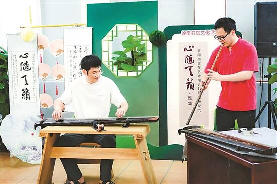 羊城晚报讯 记者陈卓栋、通讯员谭耀广摄影报道:记者9日从江门市新会区博物馆获悉,日前,冈州古琴艺术培训基地在新会区景堂图书馆心连心多元文化园内揭牌。揭牌仪式还邀请古琴爱好者现场弹奏古琴、本土书法家现场挥毫,吸引众多市民观赏、参与。相关负责人表示,冈州古琴艺术培训基地的成立,将有力推动冈州古琴文化的普及,拉近古琴艺术与群众之间的距离。 据介绍,“冈州古琴艺术”是江门市级非物质文化遗产。新会是岭南琴派的发源地,曾孕育了一大批岭南琴派著名琴人。 其中,清代岭南琴家、新会人黄景星更被后世奉为岭南琴派创始人。2020年以来,新会区博物馆配合冈州古琴艺术项目保护单位景堂图书馆,围绕“古琴文化进学宫”主题,积极开展展览、雅集、公益培训班等形式多样的古琴艺术宣传推广活动。 在日前的揭牌仪式上,冈州古琴艺术项目传承人林栋胜及一众古琴爱好者现场弹奏《广陵散》《映山红》《流水》等古琴经典名曲,让在场观众沉浸式感受冈州古琴风雅绝伦的艺术魅力。新会区博物馆馆长袁梅梅表示,希望冈州古琴艺术培训基地建立后,能更好地发挥作用,继续加强古琴培训、琴学研究等工作,进一步弘扬冈州古琴非遗文化,营造冈州古琴艺术交流学习良好氛围,为中华优秀传统文化的传承和发展作出新贡献。