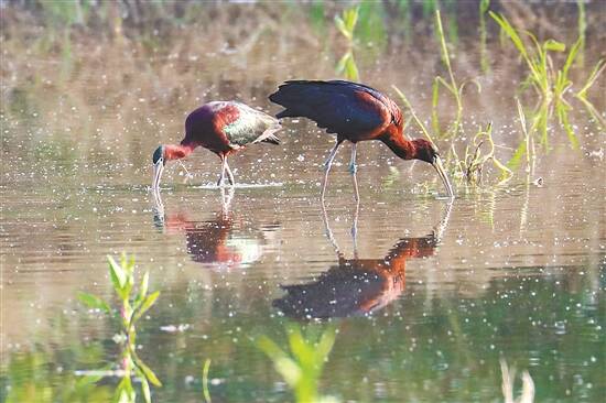 鸟类摄影爱好者今年在东莞谢岗镇黎村拍摄到的罕见鸟类品种——彩鹮 谢岗宣供图 |