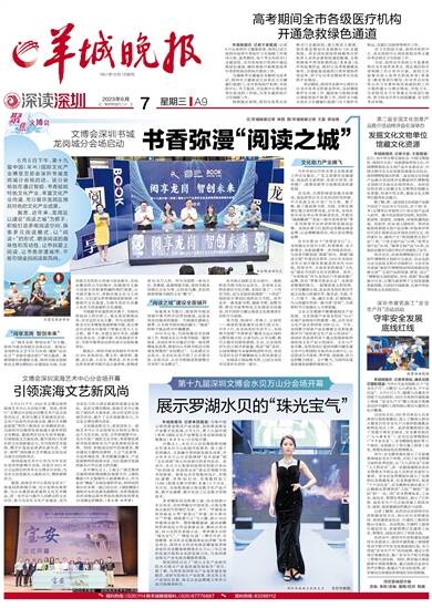 文/羊城晚报记者 林园 图/羊城晚报记者 王磊 郭语扬 6月6日下午,第十九届中国(深圳)国际文化产业博览交易会深圳书城龙岗城分会场启动。该分会场旨在通过智能、书香赋能特色文化产业