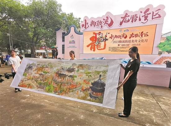 羊城晚报讯 记者杨苑莹、通讯员顺宣报道:每年农历五月初三,珠三角地区的龙舟都会自发聚集到佛山顺德龙眼村太尉庙进行“点睛”,这也是“全国龙舟之乡”顺德在端午期间最隆重的民俗盛事之一。6月20日,在“水韵勒流 龙腾湾区”2023勒流街道龙舟文化月之“龙眼点睛”习俗活动现场,一幅长达3米的国潮长卷《顺峰游龙图》重磅首发。 据悉,该幅长卷由佛山本土青年画家陈志杰历时一个多月创作,以端午节赛龙舟为行进视角串联画卷。“划”过春夏秋冬,在河道两岸呈现顺德各镇街不同时节的非遗节庆活动,以及隐藏在细节中的非遗技艺,体现出顺德深厚的传统文化底蕴。 作为“全国龙舟之乡”,顺德的龙舟竞渡自古有名,分“游龙”和“赛龙”两种:“游龙”龙舟体积较大,装饰美观,重在游弋,旗鼓助兴并展示服饰;“赛龙”龙舟体积较小,从三桡至十五桡不等,重在竞渡争先。 为展现顺德龙舟竞渡的壮美场景,长卷采用鱼眼摄影的构图手法,让画面更加开阔大气。同时,长卷根据龙舟竞赛的整个过程,从龙舟的制作技艺、雕刻技艺,再到起龙、龙眼点睛、龙舟竞赛,以及龙船饭,最后将视觉中心集中到乐从龙舟队,形成画面的高潮点。 除了龙舟相关活动,国潮长卷《顺峰游龙图》还以时间为轴,串联起十个镇街的民俗活动,包括春天的人龙舞、八音锣鼓、观音开库,秋天的烧奔塔、关帝侯王出游、水上婚礼和三字经,冬天的陈村花会等。 值得关注的是,长卷中还隐藏了不少传统非遗技艺,比如藏在建筑里的顺德广绣、大良鱼灯制作,藏在云雾中的香云纱染整技艺,藏在龙船饭中的均安蒸猪烧猪、双皮奶,需要观众仔细寻找挖掘。 值得一提的是,除了白天的场景,陈志杰还创作了一幅夜间版《顺峰游龙图》,重点展现具有夜晚特色的容桂夜龙巡游和杏坛烧奔塔。“希望通过夜晚华丽热闹的场景,让观众感受跟白天不一样的龙舟氛围,去探索顺德水乡文化的另一种魅力。”陈志杰说。 顺德区委常委、宣传部部长张红兵表示:“希望以‘国潮’元素为表达载体,以时代精神激活顺德文化底蕴,全面提升顺德在粤港澳大湾区的竞争力、影响力和辐射力!”
