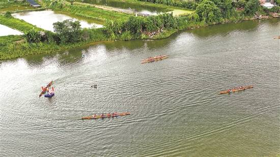三水上演“五人龙”竞渡 梁正杰 摄 |
