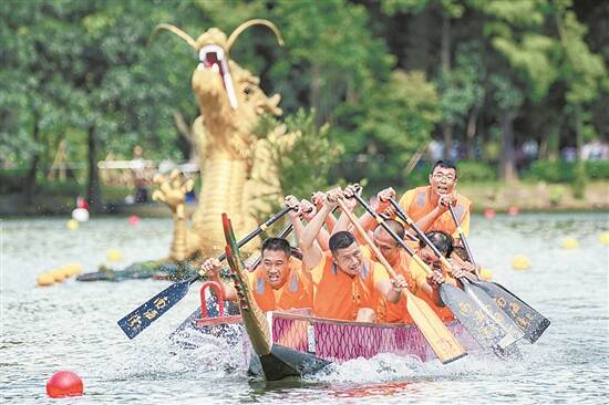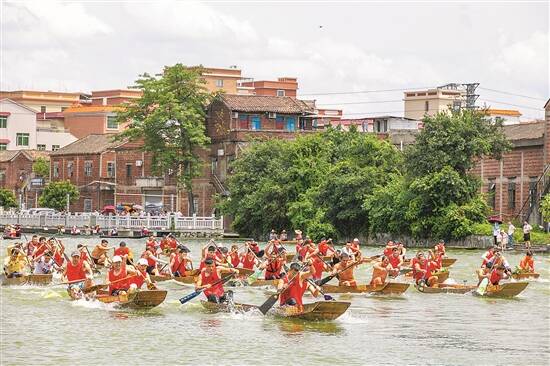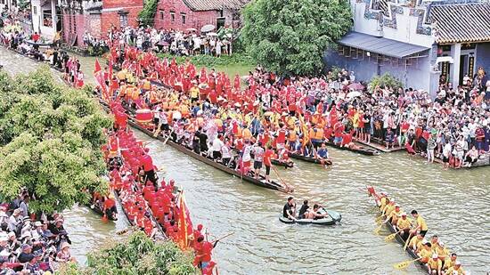 羊城晚报记者 张闻 景瑾瑾 梁正杰 欧阳志强 杨苑莹 端午的佛山,龙舟竞渡、锣鼓喧天的场景在大河小涌轮番登场。起龙仪式、龙船漂移、夜龙汇游、龙舟巡游、水上市集、千人龙舟宴等一系列的活动,让人们沉浸在热闹的节日氛围里。 佛山龙舟文化历史悠久,“力争上游、拼搏向上、团结合作”的龙舟精神代代相传。今年端午节,佛山各区将龙舟民俗文化与水乡文化、美食文化有机融合,串联起丰富多彩的文化展演、文化产品展示等,精彩绝伦的龙舟文化活动在佛山五区接连上演,全方位展示龙舟文化的多彩魅力。 禅城 草艇赛年轻人唱主角 禅城南庄水网密布,农历五月,这里格外热闹。在刚刚过去的端午节期间,南庄镇多个村居举办了赛龙舟活动,湖涌村第六届男子三人草艇赛就是其中之一,在河涌里上演了一场“速度与激情”的水上盛宴。 在南庄湖涌村,有这样的一句话:“出门见水,举步登舟”,湖涌村水网密布,过去,草艇是湖涌村的必备交通工具,出入都要靠它。在桑基鱼塘的年代,草艇被用来运输货物和渔猎,成为村民重要的“揾食工具”,家家户户必有之。甚至,草艇被用来作为嫁娶工具,被装饰成迎亲花艇。 在以前,扒草艇跟游泳一样,是湖涌村的人们必须学会的技能,扒草艇是一项技术活,控制不好的话,艇会一直在水上打转,不能前进,甚至会翻艇落水。如今,湖涌扒草艇是佛山市级非物质文化遗产项目,每逢端午等佳节,村里面便会举办草艇赛,各小组村民都踊跃参与。 在今年的端午节当天,有37只草艇、111名参赛队员参赛。随着裁判的哨声响起,队员们整齐地挥动手臂,奋力划桨,草艇疾驰而去,船桨翻飞水花四溅。岸上的观众也被运动健儿的速度与激情点燃,吆喝声和加油声不绝于耳,场面热闹非凡。据介绍,本次草艇赛接近一半参赛选手为90后、00后的年轻人,他们接过前辈的“接力棒”,传承这项珍贵的传统文化。 南海 龙船漂移火爆出圈 一场龙船漂移比赛,引来全国30多家媒体推送直播端口,羊城晚报对其的报道被《美中报导》等多个国家媒体转载——这就是南海龙舟的魅力。记者了解到,3天的假期内,南海多个镇街都举办了龙舟赛事。其中,南海东部桂城街道的叠滘龙舟漂移,南海西部西樵山上的“半山扒龙舟”尤其吸引了社会关注度。 扒手整齐划一,舵手在关键转弯时按下船桡,在C型、L型、S型的狭窄溪道上小巧腾挪,惊险程度赶超“秋名山赛车”。今年端午节,桂城街道的龙舟漂移又火了。据了解,龙船漂移运动起源于叠滘村的独特地形,由于溪流纵横交错,村民船技精湛,明清时期,叠滘已逐渐形成了龙船漂移的传统。而随着杉木船身逐渐普及,龙船漂移的惊险程度越来越高,最终形成了如今闻名世界的龙船漂移运动。 拥有如此身手,龙船上有多少专业运动员?答案是“一个都没有”。“这里的每一位村民都有自己的职业,划龙船是生存技能和业余爱好,但论技术程度,我们每一位村民都比得上专业运动员。”22岁的大学生村民李大权告诉记者。李大权的父亲是叠滘村其中一个村小组的龙船召集人,他回忆道,村里的孩子,五六岁就趴在栏杆上看龙船比赛,八九岁就上船玩耍,十三四岁就开始“扒仔”生涯,身手好的扒仔,最终会转职成为舵手,舵手就是龙船能成功实现漂移的关键。近年来,随着村里环境越来越好,龙船比赛也越来越热闹,“无论有多忙,端午节都会有很多村民赶回来扒龙船。”其中,许多放假的大学生就利用假期这段时间,回来从父辈手上接过船桨,完成这项民俗活动的代际传承。 近年来,叠滘龙船漂移越来越火出圈,不但成为每年全国乃至海外媒体的聚焦点,赛事更带旺了周边商圈。数据显示,截至6月23日晚,叠滘龙船已经多次“刷脸”央视、新华社等央媒,累计吸引全网超2亿网友围观;在安全控流的情况下,叠滘日均人流约8万人次。 同样在南海火爆的,还有西樵山的“半山扒龙船”。“半山扒龙船”距今已有500年历史,辞官归里的明代士大夫方献夫曾组织西樵山民劈山开河,集水成湖,开展扒龙船竞赛。如今,“半山扒龙船”已成为南海“敢闯敢干”“喝头啖汤”的象征,也成为引人关注的一项民俗活动。数据显示,通过直播,本次活动在线上吸引了200万人观看。 顺德 百龙闹江非遗秀 今年端午,中国龙舟之乡、世界美食之都顺德热闹非凡,欢乐龙舟文化节系列赛事共有111项,龙舟宴筵开近万席,超10万人参与。顺德乐从罗浮宫龙舟队更是在2023中华龙舟大赛(福建·福州站)勇夺2金1银,总成绩排名第一。 农历五月初八,顺德杏坛龙潭龙母诞正式回归顺德。杏坛龙潭河涌迎来上百只龙船,呈现“百龙闹江”的盛况。以龙船巡游、泼水送祝福的方式庆贺龙母诞,现场还有人龙舞、八音锣鼓、龙舟说唱等非遗表演巡游,为市民和游客带来一场精彩的龙文化盛宴。 在勒流,上百只来自广州番禺、中山、江门等地的龙舟从早到晚沿着水路,一路划行,来到勒流龙眼村完成热闹的“点睛”仪式。据了解,2015年,“龙眼点睛”习俗被列入广东省非物质文化遗产。 端午节除了赛龙舟外,作为“世界美食之都”的顺德又怎会少了好吃的龙舟宴。龙舟宴不仅是祝贺竞赛健儿夺标归来的盛宴,更是全村老少共享农闲时光、沟通感情的重要时刻。“顺德龙舟宴参考标准”的发布,对顺德的龙舟宴进行了全流程的标准化,包括12个菜品,每道菜从选材到寓意,都与龙舟文化紧紧