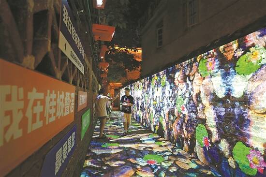 市民朋友正在打卡互动灯光巷子 受访者供图 |