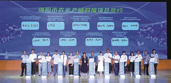 文/图 羊城晚报记者 张晓宜 通讯员 吴俊贤 近日,揭阳市乡村产业高质量发展暨农业招商引资大会举行。活动通过出台揭阳市乡村产业高质量发展系列政策措施,推介签约一批涉农招商引资项目,宣传推广“揭农尚品”品牌与“揭阳预制菜”及揭阳名特优新农产品,加快推动农业大市向农业强市转变。 针对新阶段推进揭阳乡村产业高质量发展,广东省农业农村厅二级巡视员廖纪坤建议,一是坚持抓龙头、强加工,重点发展农产品精深加工,引导“产学研用”联合攻关;二是坚持抓平台、促融合,推动产业在平台集聚,发挥平台辐射带动作用;三是坚持抓品牌、增效益,依靠品牌影响力获得更大发展空间。 会上发布了《揭阳市水稻全链条生产服务建设三年行动计划(2023-2025年)》《揭阳市加快推进预制菜产业高质量发展若干措施》《揭阳市现代化海洋牧场建设实施方案》等5个揭阳乡村产业高质量发展系列文件,小程序“揭农尚品”上线,并发布相关品牌及产品。 大会现场公布了揭阳预制菜十大名菜,分别是惠来卷章、惠来隆江猪脚、惠来虾枣、惠来鱼丸、揭东黑松露焗鲍鱼、揭东埔田上汤浸笋丝、揭东埔田竹笋肠、揭西潮味腊肠、揭西苦笋咸菜煲以及普宁豆酱鸡。 此次大会推介签约了一批涉农招商引资项目,推动揭阳乡村产业高质量发展,加快推动农业大市向农业强市转变。为搭建好揭阳预制菜发展平台,发挥揭阳市农业产业协会牵线搭桥作用,揭阳市发动科研院所、高校、预制菜相关企业、农业龙头企业、电商平台及行业协会从业人员共同建立揭阳预制菜产业联盟。 在户外的揭阳市名特优新农产品展销会,共分为揭阳名特优新农产品展销区、揭阳预制菜展销品鉴区、“揭农尚品”展销区、驻镇帮镇扶村展示区、特色节目表演区五个主要展区。揭阳市委常委、副市长蔡淡群表示:“这次活动组织了120多家本土农业企业集中展销,通过品美食、看节目、享农趣、购产品,线上线下多渠道、多维度、立体化宣传推广,在招大引强中凝聚产业新动能,加快实现揭阳农业产业全链条发展,助推百县千镇万村高质量发展。”