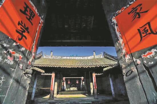 江厦谭氏宗祠大门贴着“家风 理学” 黄克锋 摄 |