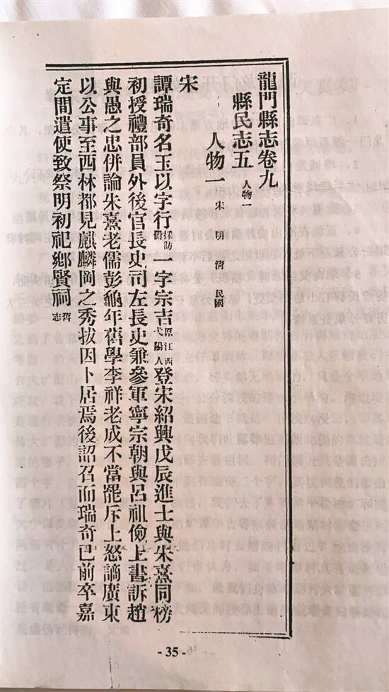《龙门县志》记载了龙门谭氏始祖谭瑞奇的生平事迹 |