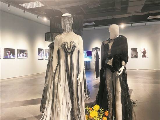 羊城晚报讯 记者王雷摄影报道:7月6日上午,山水岭南 水墨霓裳——郭霄霄东莞疍民传统服饰创新设计作品展在东莞市文化馆开展,本次展览将在东莞市文化馆一楼东展厅展至7月25日。 记者了解到,本次展览是2023年东莞市青年艺术家圆梦行动系列活动之一,以广东省“十三五”哲学社会科学地方历史特色规划项目《东莞沙田疍家传统服饰的保护、传承和发展研究》为基础,展出青年艺术家郭霄霄的四组以“水墨”为媒介的原创疍民服饰设计作品和近十年来的学术研究成果。 其中,展览作品《水墨疍韵》创作于2019年。作品打破了传统疍民服饰文化的“束缚”,大胆地将疍民服饰元素与中国传统水墨进行融合,用水墨的虚实变化再现了疍民服饰的“亲水性”特征,视觉冲击力和感染力较强,该作品曾在第五届深圳国际时装节上进行展演。展览作品《都市水墨》创作于2020年。艺术家将水墨元素融入现代服饰艺术创作中,用水墨设计的装饰意味来体现服饰的时尚特征,表现出都市人对于高雅趣味生活的追求和向往,推动现代时尚文化的多元创新发展。该作品曾在第六届深圳国际时装节上进行展演。 在现场,青年艺术家郭霄霄还深情表达了自己对东莞疍民文化的关注和相关非遗项目的研究心得,希望通过自己的服装设计作品,让非遗回归日常生活,用时尚的表达让精彩的传统文化再次成为潮流。东莞市文化馆馆长黄晓丽也表示:“东莞市文化馆将立足‘优秀传统文化传承’职责使命,聚焦‘潮流东莞’建设目标,不断寻找优秀传统文化的潮流表达。”