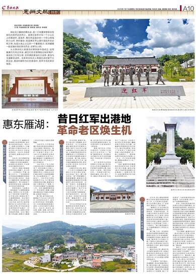 策划/统筹 羊城晚报记者 陈骁鹏 文/图 羊城晚报记者 杨锦强 通讯员 林德胜 地处东江腹地的惠东县,是一片有着深厚革命传统和光辉历史的热土。坐落在稔平半岛一个小山丘上的雁湖村