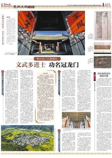 策划/统筹 羊城晚报记者 陈骁鹏 编者按 惠州龙门谭氏,是当地有史可查的较早的家族之一,有着“谭半城”美誉。早在元末明初,谭氏就成为龙门的望族,历代科举士子不胜枚举,成就斐然。