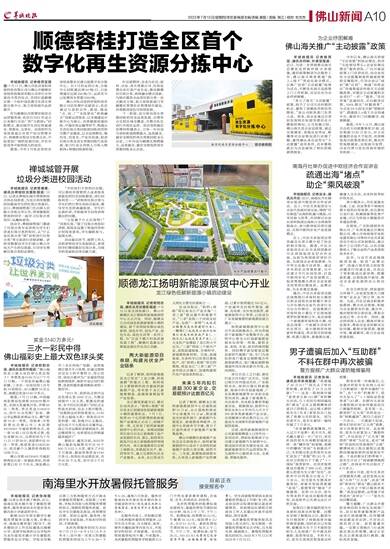 羊城晚报讯 记者杨苑莹报道:7月11日,佛山市优店容控环保科技有限公司与佛山市顺德区容桂控股集团有限公司举行合作意向书签约仪式,共同打造顺德区第一个标杆绿色数字化再生资源分拣中心,助力容