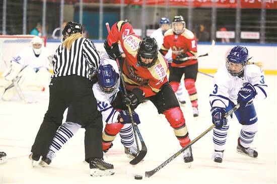 2017年11月18日,CWHL(加拿大女子冰球联赛)主场揭幕战深圳昆仑鸿星VS多伦多怒火比赛中 彭志刚供图 |
