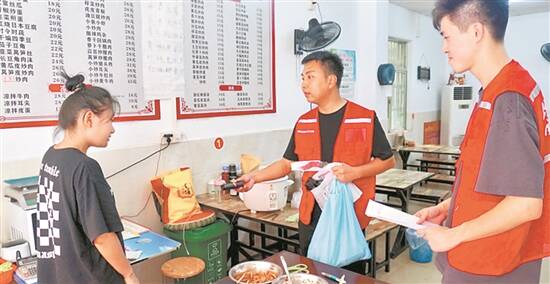 党员志愿者向商户派发及讲解《条例》 受访者供图 |