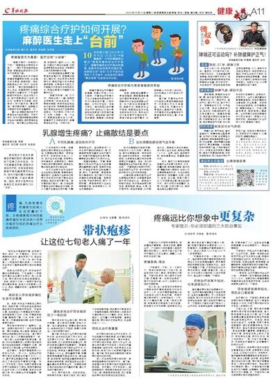疼痛,尤其是慢性疼痛常引起病人生活质量的下降。本期健康周刊特别邀请疼痛科专家详细介绍带状疱疹引起的疼痛治疗及疾病预防。      文/张华 王舒慧 图/林添杰      “刚开始只是面部疼