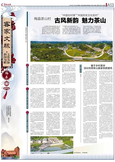 羊城晚报记者 危健峰 通讯员 王皓 水车镇位于梅州梅县南部,梅江河自西南向东北穿流,因地域溪流密布,传说人们用竹筒水车灌溉农田而得名,著名的“水车窑”就出自此地。然水车镇之独特不止于此,被评为“中国古村落”和“中国历史文化名村”的茶山村也藏在青山环抱之中,“一窑一村”彰显了水车镇悠久的历史和独特的文化。 茶山村之名源于村内有一棵巨大的古油茶树。据《黄氏族谱》记载,先祖云祖公于明代初年从梅城西厢五马坊迁居于此开村,繁衍生息,清末达到鼎盛。据统计,茶山村现存42处传统建筑,包括2处省级文物保护单位、4处市级文物保护单位、17处县级文物保护单位、1处历史建筑、18处传统风貌建筑;保存有2条古河道、5条古道(街巷)、3棵古树、16 口古井、4座古桥、1座古炮楼、1处公王庙和6根楣杆夹石,可谓研究客家历史文化和传统客家建筑的“宝库”。 保存完善,极具研究价值 茶山村的古民居依山连片而建,集中分布于“荷树窝”一带,历史建筑与周边自然环境融为一体,形成特有的客家传统人文生态环境,传统建筑单体普遍保存较好,整个村落仿佛一幅山水建筑长卷,古道沧桑,幽雅恬淡。 嘉应学院客家研究院院长肖文评在《客家村落》中指出:“它们并不像粤东、粤北那些客家古村落那样聚族而居、都围在一个连片而建的围村里,而是沿着周围的山脚四处散开,或三五相邻,或左右并列,或独门独户,分散在各自认为风水好的山脚地头。” 这些古民居的选址反映出客家人追求理想居住环境的特点,历经百年变迁而村里结构和空间保持不变又体现出客家先民选址的趋吉意象,展示了“黄龙出洞,蝙蝠挂墙,山寨四脚,龟蛇两旁”的特征。 茶山古民居从建筑时间上看,绍德堂为明代建筑,迄今近500年历史,萼辉楼、创毅公祠、伯荣楼超过300年历史,畅云楼、德崇楼、司马第、培云楼、承庆楼超过200年历史,其余民居皆具100年左右的历史。从建筑形式看,客家地域特色明显,建筑形制丰富,有杠式、殿堂式、庭院式、锁头式等,或二堂两横,或二堂四横,或二堂六横。它们多为两层,白墙黑瓦,雕梁彩绘,甚至有中西合璧式建筑,建筑材料和结构具有多样性。 2010年7月,茶山村被中国文联和中国民间文艺家协会命名为“中国古村落(客家民居)”,同年12月又被国家住建部及国家文物局评为“中国历史文化名村”,2012年12月被列入第一批中国传统古村落名录。茶山村是梅州市第一个入选“中国历史文化名村”的古村落。 文风鼎盛,英才杰士辈出 耕读传家、崇文重教是客家地区的文化传统,茶山村也是如此。在茶山村,百年以上的学校便有5所,分别为1790年创建的鸣凤书室、1805年创建的抟云书屋、1885年创建的焕郎书屋、1910年创建的云汉女子学校(时为嘉应州乡村第一所)、1911年创建的绍德学校。其中,云汉女子学校是少见的女子私塾,可见在茶山村男女具有平等享受教育的权利。 据资料记载,茶山村清代共有进士、贡生、监生以上功名者48人;外出港、澳、台投资经商的约200人;华人华侨约450人,主要侨居地为印尼、新加坡、泰国;在军政、文教等领域声名远扬者更比比皆是,其中近现代将军4人、教授5人、部级干部4人、其他杰出人物10多人。 茶山村人才辈出,可从古民居中窥见一二。绍德堂始建于明代嘉靖年间,清代、民国重修,是黄氏祖祠。堂前设有15级台阶,前面风水塘旁边立有4根昔日考中科举的标志——旗杆石。与绍德堂相邻的是创毅公祠和访云楼,其中具有300多年历史的创毅公祠,门口对联为“西京贡相府,东观大儒第”,可见其尊贵。大夫第建于清光绪年间,是一幢硬山式二堂四横围屋,是1921年孙中山第一次北伐时出任梅军总参谋长的黄新华的故居。云汉楼是昔日新加坡四大财团之一、有“嘉应首富”之称的黄云辉的故居。黄云辉衣锦还乡后,兴办了“绍德学校”和鼓励女子上学的“云汉女子学校”。培元楼是国民革命军北伐战争时期有“铁军”之称的第四军军长黄琪翔的故居,黄琪翔还是中国农工民主党创始人之一。资政第是民国时期曾任广东省议会议长黄锡铨的故居,是茶山村唯一一幢带有中西合璧色彩的方形围屋。黄锡铨的女儿黄甘英曾任全国政协常委、全国妇联副主席。 规划保护,焕发茶山新魅力 对茶山村的古民居进行影像记录,建立影像库、搭建小程序,并按照相关规定进行保护修缮……今年以来,梅县区开展了传统村落集中连片保护利用示范工作,加大传统古村落的保护力度,推动传统古村落历史环境的修复和传统建筑的修缮维护。 据了解,为了保护利用好茶山古村落,传承历史文脉,2022年4月,梅县区编制了《中国历史文化名村梅州市梅县区水车镇茶山村保护规划(2012-2035年)》(以下简称《规划》);2022年6月,公示了该规划的修编结果。 《规划》结合茶山村原始风貌靓丽、建筑风格独特、居住环境优美、客家文化浓郁等特点,提出“古风新韵,魅力茶山”的主题定位。在保存茶山村原始风貌的前提下,对茶山村整体环境优化提升,注入现代元素营造新的韵味,增强茶山魅力。通过整体保护、分区保护、建筑和历史文化要素保护和整治建设规划,使茶山客家古村落的传统风貌的建筑、宗祠文化、耕读文化、田园生活等得到彰显、保护和延续,实现“历史风貌完整、生态环境优美、传统文化悠久、生产生活便利”的国家级历史文化名村的