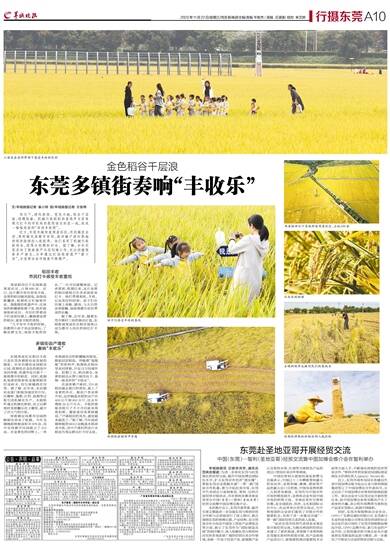 文/羊城晚报记者 秦小辉 图/羊城晚报记者 王俊伟 阳光下,清风徐徐。莞邑大地,稻谷千层浪,稻穗低垂。机械化收割机的轰鸣声与前来观光打卡的市民的欢歌笑语交织在一起,组成一幅