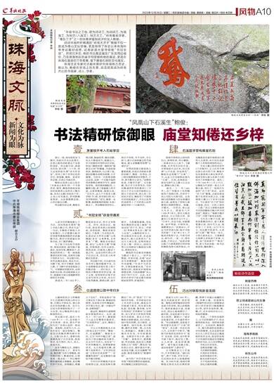 羊城晚报记者 李旭 “非徒书法之工也,君为诗诗工,为词词工,为画画工,为制艺(八股文),制艺尤工。”岭南著名学者、“粤东三子”之一的张维屏曾如此评价友人鲍俊。 诗词书画样样精通的“岭南大才子”鲍俊不仅一度成为香山文坛领袖,更是取得了有史以来珠海科举考试最好成绩,试卷获道光皇帝御批“书冠全场”。辞官回乡后,他的书法真迹遍及广东及周边省份,乃至港澳地区的庙宇祠堂都有他的真迹,更是在珠海石溪效仿兰亭雅集,留下摩崖石刻的文化瑰宝。 珠海文史专家何志毅长期研究珠海地方历史,他认为,鲍俊在官场上的失意,却造就其成为岭南杰出的书画家、诗人、学者。 茅塞顿开考入石岐学宫 崖山一战,南宋政权灰飞烟灭,但赵氏并未从此湮灭,在香山始终活跃着这个皇族的身影。何志毅介绍,清道光年间,赵氏第二十六世,举人出身的赵允菁“诗书世其业”,培养了两个非常出色的学生:曾望颜、鲍俊。前者官至总督,后者以书画名世。 鲍俊出身香山县山场乡(今珠海山场村)的一个书香世家,据考,鲍俊的始祖是南宋时流落香山县的名士鲍允瑜,其有《无题》诗流传于世:云来山有凤凰名,罗列群峰耸翠屏。从此烟霞栖息稳,云礽后裔出公卿。 何志毅告诉记者,鲍俊长相丑陋,脑扁驼背、露齿歪腮,但从小酷爱读书,聪颖过人。年少时路经村里的吴氏宗祠,仰见门楣悬挂着一幅阴刻“能素吴公祠”的横匾,书迹枯湿浓淡、潇洒流利,为之着了迷,便回家搬来桌椅及砚墨,日夕描摹。当时有一位收账客路过这里,见到一个后脑平扁的男孩聚精会神地学写字,感到很奇怪。他捋着两撇蛟须,上翻着白眼,看了看匾额上的字迹,又看看鲍俊,摇摇头说:“后生仔,这几个字很多人都学唔(不)到,你学到归西(死)也学唔到的。”说完,掖着一本账簿,拖着脆响的屐拖(木屐)离去了。然而鲍俊很有恒心,他目不旁视、耳不杂听,专心研习,数日后竟将匾文的书迹摹成,被父亲鲍瞻贵称赞“心通手灵”。 尽管因容貌丑陋受族人鄙视奚落,但是在名师赵允菁的劝解下,鲍俊一反常态,自己把衣服整理得非常整齐、干净,到书塾专心读书,“怠惰农攸戒,辛勤学不虚”。天生聪颖,加之学习非常用功,当时村塾通常所用的教材《三字经》《千字文》《幼学琼林》《心牍》《千家诗》等,别人用三年时间才读完,鲍俊用了不到两年时间就通读了,并且以优秀的成绩考上了当时香山县的最高学府——石岐学宫。 “书冠全场”获皇帝嘉奖 入读学宫的鲍俊醉心于书法。因其师赵允菁的“能上寺庙大殿之书,绝非凡品”一句话,令鲍俊不顾他人非议和侧目,日夕描摹石岐学宫里那些飘逸洒脱的名家匾额书法,稍有空闲便遍访各地寺庙,专门搜罗碑帖。 为了练习书法和节省纸张,他每回到家,就用瓶子装满水,找来毛笔,蹲着身子,在地面的阶砖上一笔一画地临摹诸名家的字帖,直到用完瓶子里的水为止。何志毅介绍,其作品颇具姿态,笔法生动,兴酣下笔,均字字精到、钩深入微,于飞舞中具饶劲挺拔之气。可谓静如菩提冥思,动则如游龙出海,形成既清新又古朴,既遒丽丰润又意蕴醇厚的独特艺术风格。 清道光二年(1822年),鲍俊参加乡试,考中文举第二名。次年,参加会试。临行前,他还曾来到山场城隍庙,进香祝祷。鲍俊来到京城后,于春季二月贡院应考,礼部会试主考官出题“山鸡舞镜(原句‘山鸡舞镜,自形其美’)”赋。鲍俊未审清试题,即以“山鸡有五德”作题意,用错典故,但作文甚佳,斐然成章,仍被选入殿试十卷之列。这是自明代香山学子应试以来,首位进入科举殿试及第者。 何志毅介绍,当天道光皇帝至养心殿西暖阁升坐,为小金榜御览读卷官奏上的十份殿试卷一一进行钦点。当他拆开鲍俊密封的试卷,看了又看,觉得他的试卷不但文章写得有文有质,而且行书俊秀飘逸、潇洒出群,爱不释手。当即握笔提腕,用朱笔在鲍俊的试卷上御批“书冠全场”四个字,钦点二甲第二名(即殿试第五名),赐“进士出身”,入翰林院庶吉士。何志毅还告诉记者,在这届殿试中,鼎元及第者为广东吴川人林召棠,是粤西地区历史上唯一的状元,因同为粤人且同榜而与鲍俊结为挚友,煮酒论诗文。 鲍俊的书法被皇帝御批为殿试十卷之上,一时声名鹊起,享誉京城,史载“远近求书者踵相接”。鲍俊也曾作诗感慨:“年来不为浮名绊,字债犹能累此身。”在衣锦荣归时,他到家乡城隍庙烧猪还神,为该庙题额“风云变幻”四个大字。从此,本乡和外乡的学子赴试都先到城隍庙里祭拜,祈福登科。 仕途蹭蹬以致中年归乡 入翰林院庶吉士的鲍俊不久后便调任刑部山西司主事,任期以不挟私仇、秉公执法在官场崭露头角。但不久后发生的事情和他开了一个大玩笑,也让鲍俊的仕途之路戛然而止。 何志毅介绍,道光十年(1830年)十一月,皇帝批下步军统领一奏本,着令严查发生在广东香山县的一桩凶案。奏报称,在前年八月,山场乡发生一起宗族械斗。鲍俊同宗的鲍仰聘恃朝中有人,召集100多人,拿着鸟枪器械洗劫了古氏家族,抢掠毁房,私行拷打,伤人、杀人,数罪并罚。 这本与鲍俊无关,却硬生生把鲍俊给扯上了。奏本写道,鲍仰聘“勾串主事鲍俊,倚恃熟识衙门,贿通吏役,以致案悬二载未结……何以鲍仰聘串通刑部主事鲍俊、赴官嘱托即不传审。如果属实,殊属大干法纪”。军机处指令“该主事实有干预公事、贿通吏役情弊,及该地方官听嘱偏袒。并不秉公