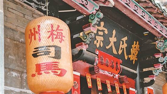 为纪念始祖梅州公,韩氏大宗祠前悬挂“梅州司马”灯笼成为家族传统 |